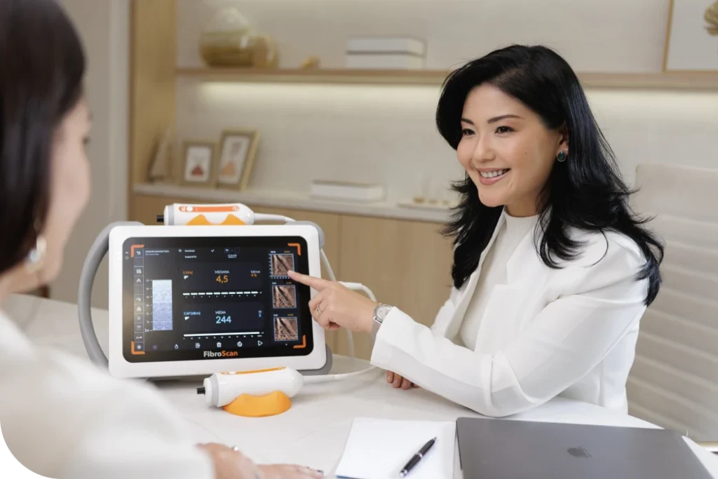 A elastografia hepática por FibroScan é um exame rápido (duração de 2 a 10 minutos), indolor e não-invasivo, que objetiva estudar 2 parâmetros: a rigidez (fibrose) e gordura (esteatose) no fígado.